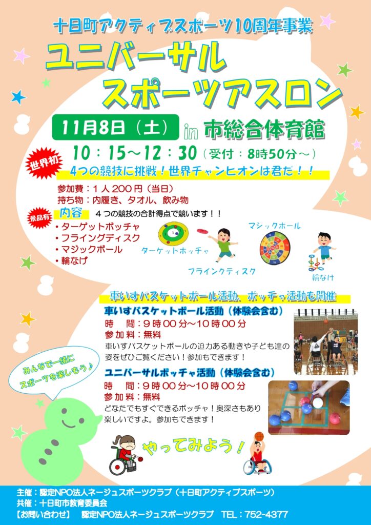 11月8日(土)十日町アクティブスポーツ設立10周年を記念して「ユニバーサルスポーツアスロン」を開催します!