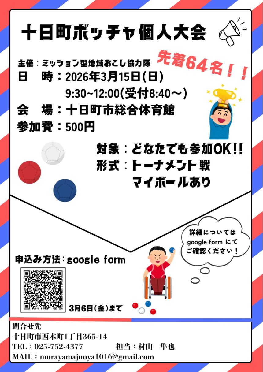 ミッション型地域おこし協力隊村山が主催する「十日町ボッチャ個人大会」を開催します!