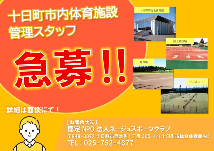 十日町市内体育施設の管理スタッフを募集します。