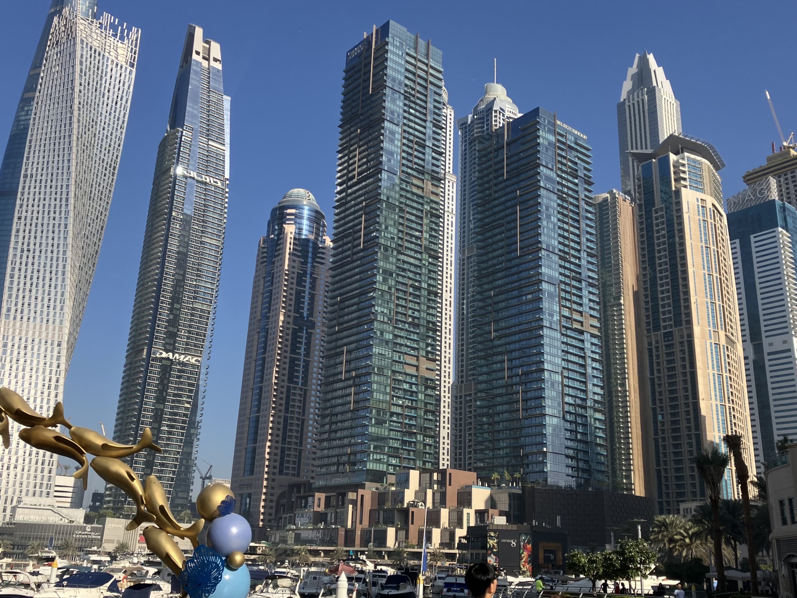 高層ビルは日本の様に角形は少なく、丸みがあったりねじれたりと。更に夜ライトアップやイルミネーション点灯ができるように建てられており、まさに観光目的の街並みでした。