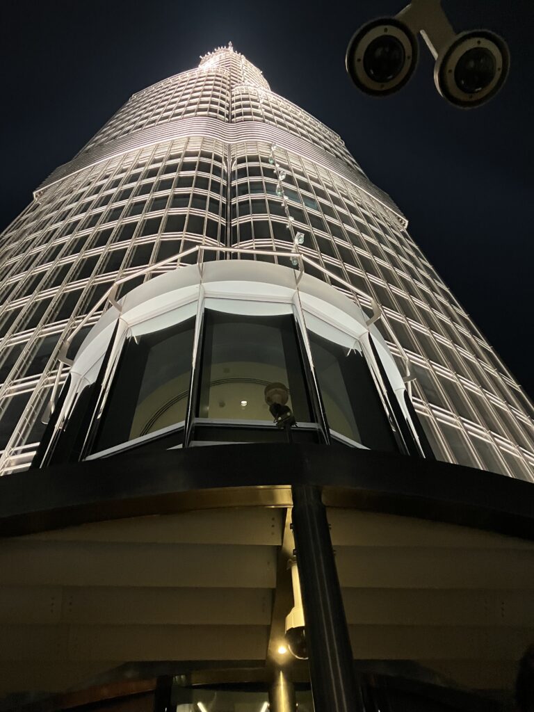 世界一高いバージュカリファは800m以上あり、展望台のある125階には高速のエレベーターで1分もかかりません。