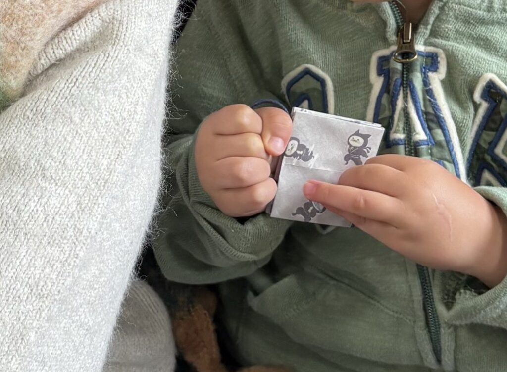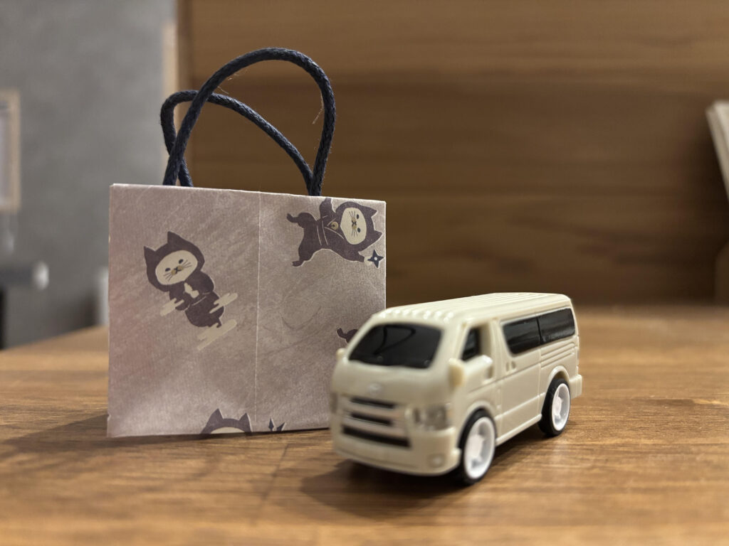 乗船場に向かうスロープカーの係員のおじさんに、手作りのミニミニバッグをもらいました。